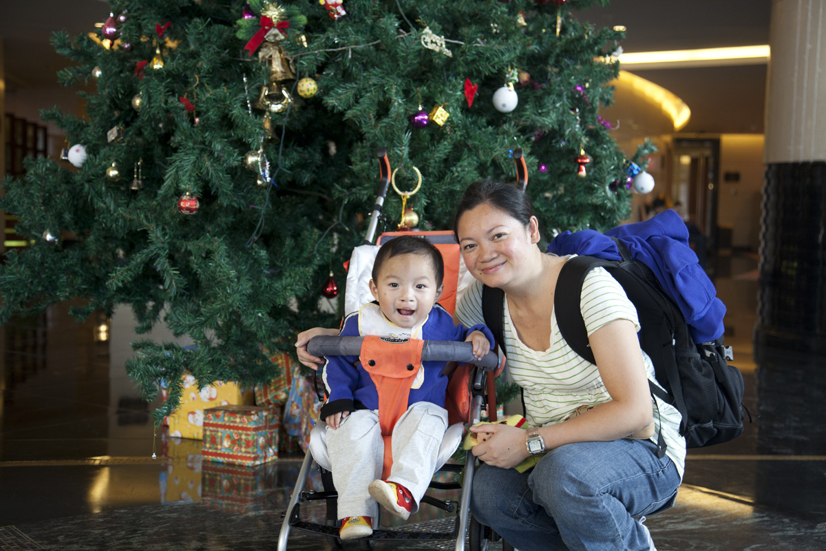 I guess I’m too heavy at around 21lbs for my mom to carry me around. So we went to a department store close by the hotel and got a stroller. It’s comfortable. I got in it right away.